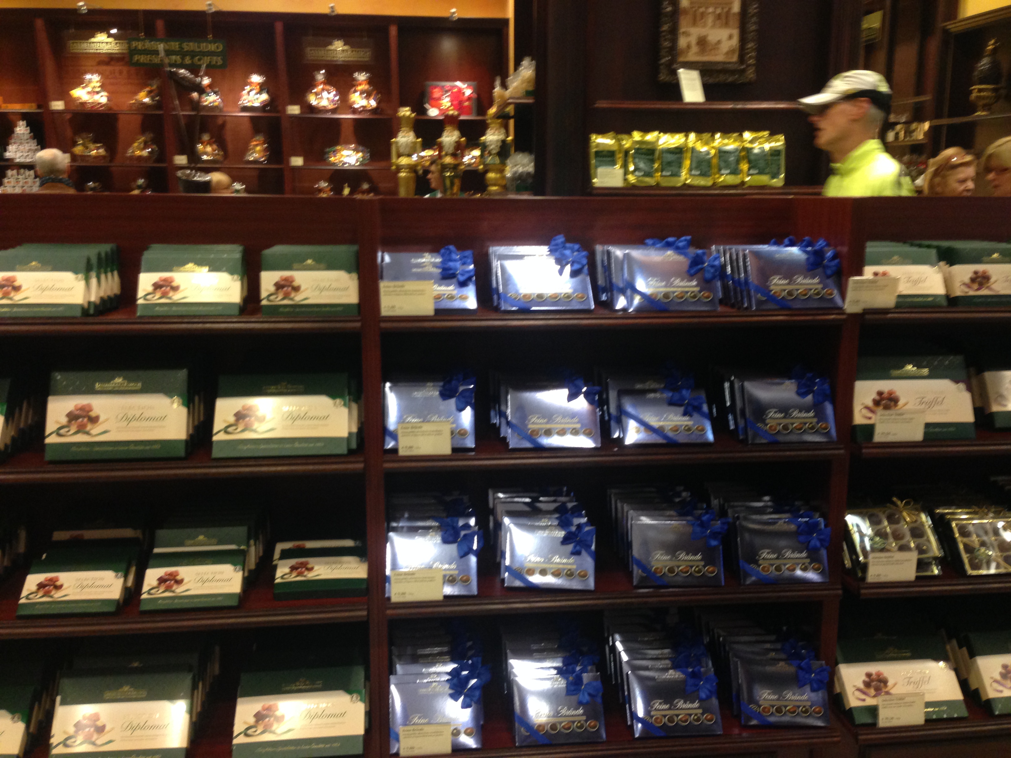 Es ist unerklärlich, sobald ich das Schokoladenhaus betrete, gehe ich mit schlafwandlerischen Sicherheit, die köstlichen Gerüche und vielen Menschen ignorierend direkt auf das Regal mit den Baumkuchen zu. Natürlich steht es immer wo anders, aber mein Tunnelblick funktioniert. James Bond wäre neidisch. Mit Freude im Herzen schnappe ich mir einem jährlichen Baumkuchen, überlege immer noch kurz, soll ich diese genauso guten Baumkuchenspitzen ebenfalls kaufen und stürme mit meinem geliebten Baumkuchen zu Kasse. Und jetzt heisst es Geduld zu beweisen. Schlangen von kaufwütigen Touristen blockieren meinen Drang schnell mit meiner Beute nach Hause zu eilen und liebevoll anzustarren bis ich mich als Baumkuchen Kannibalen outen.